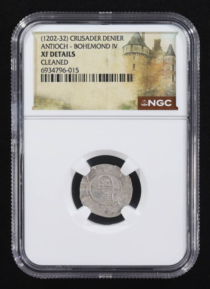 Bohemond IV (1202-1232) Antioch Crusader Denier Medieval Silver Coin (NGC XF Details)