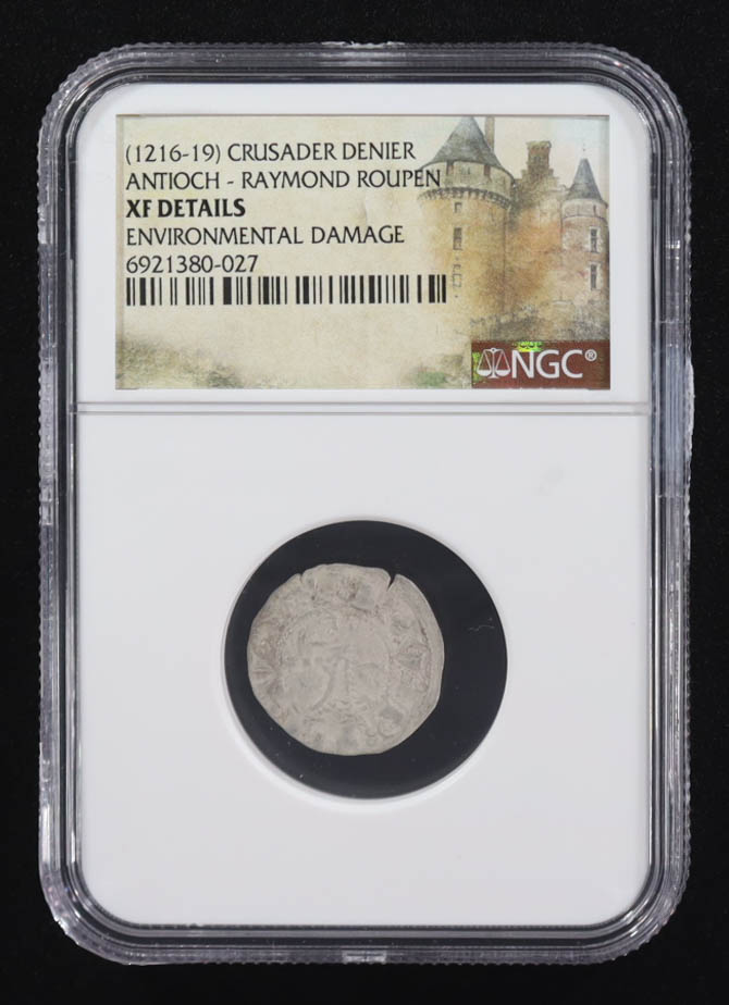 Raymond Roupen (1216-1219) Antioch Crusader Denier Medieval Silver Coin (NGC XF Details)