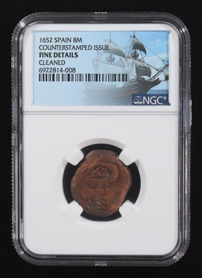 Philip IV 1652 Colonial Era Spain 8 Maravedis Copper "Pirate Cob Coin" Counterstamped Issue (NGC Fine Details)