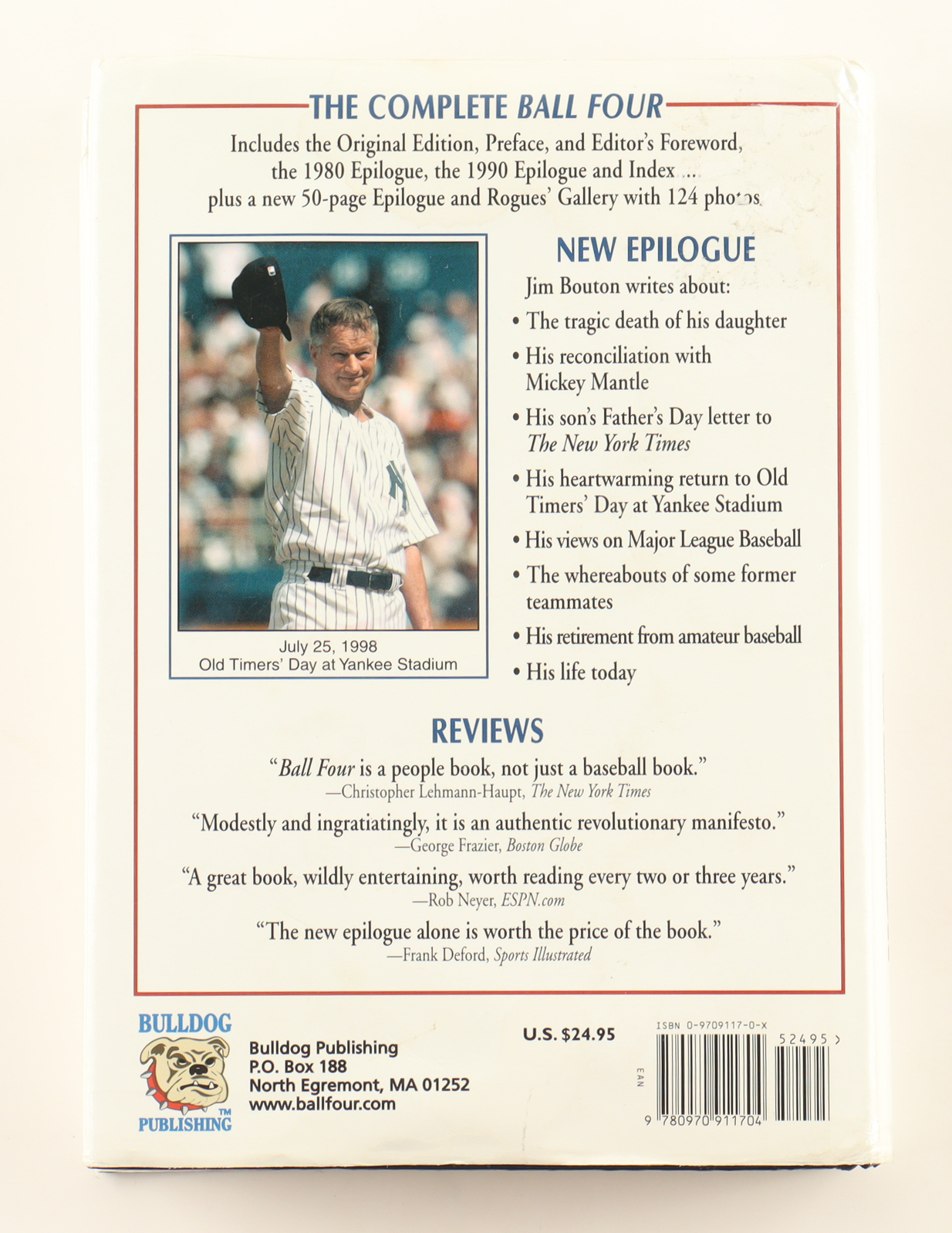 Hardcover book has been hand-signed on the inside cover page by Jim Bouton (New York Yankees).