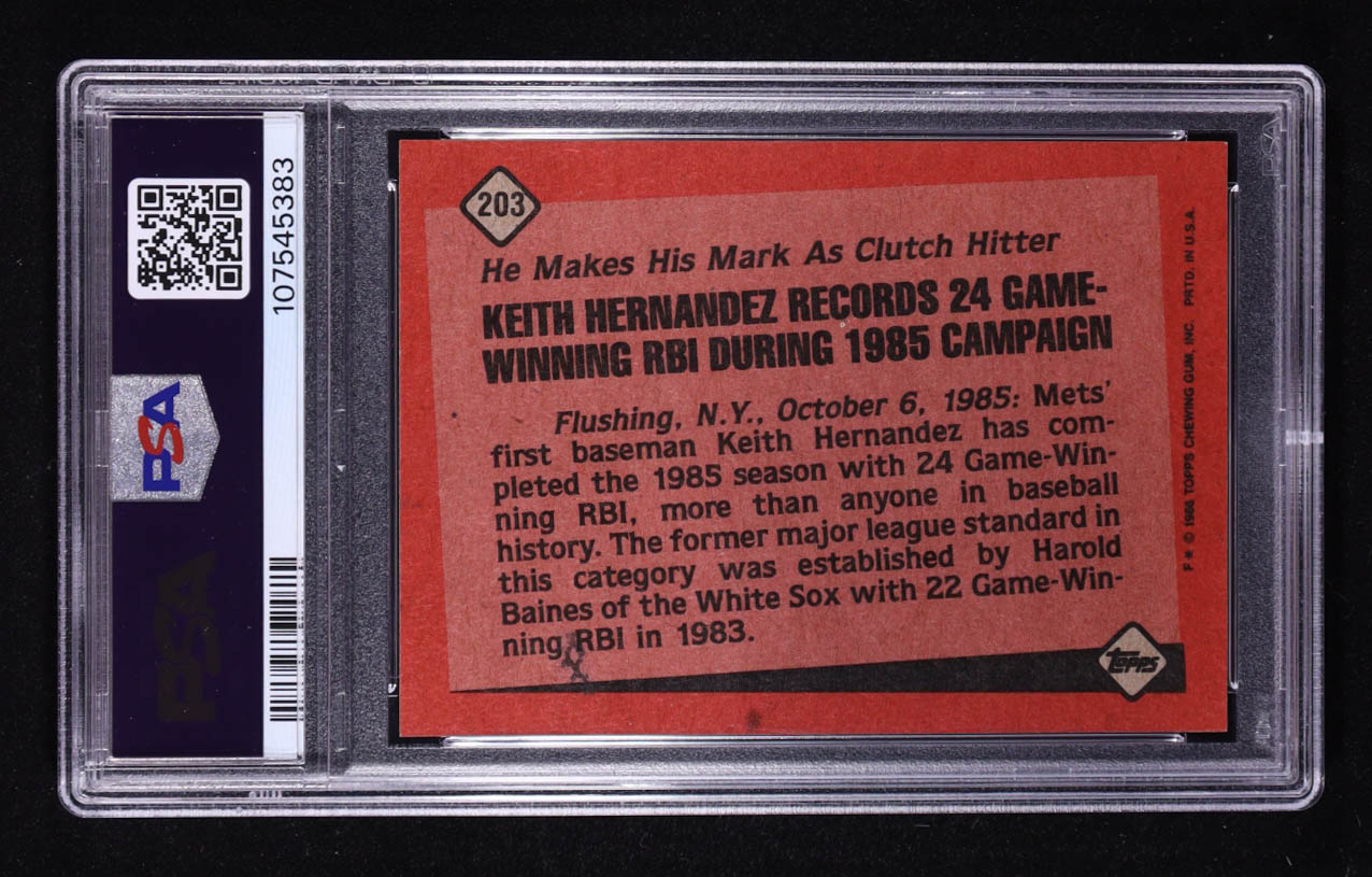 Keith Hernandez 1986 Topps #203 RB (PSA 8)