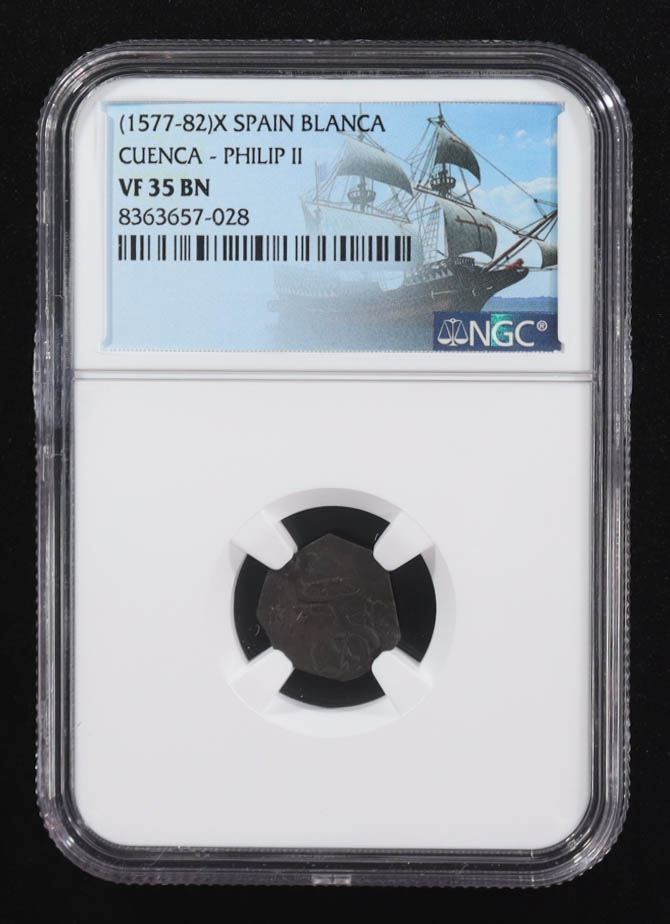 Philip II (1577-1582)-X Colonial Era Spain Blanca Copper Coin (NGC VF35 BN)
