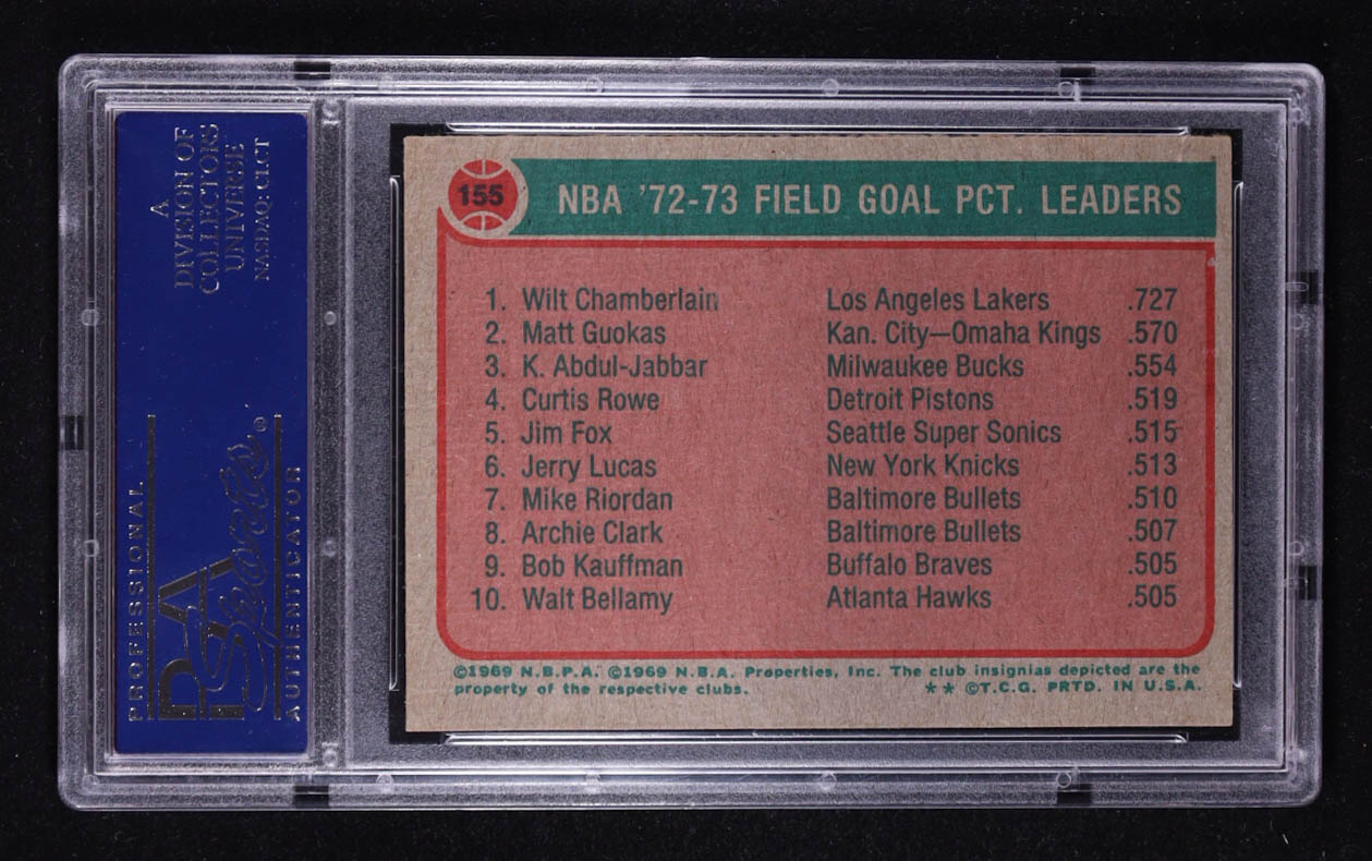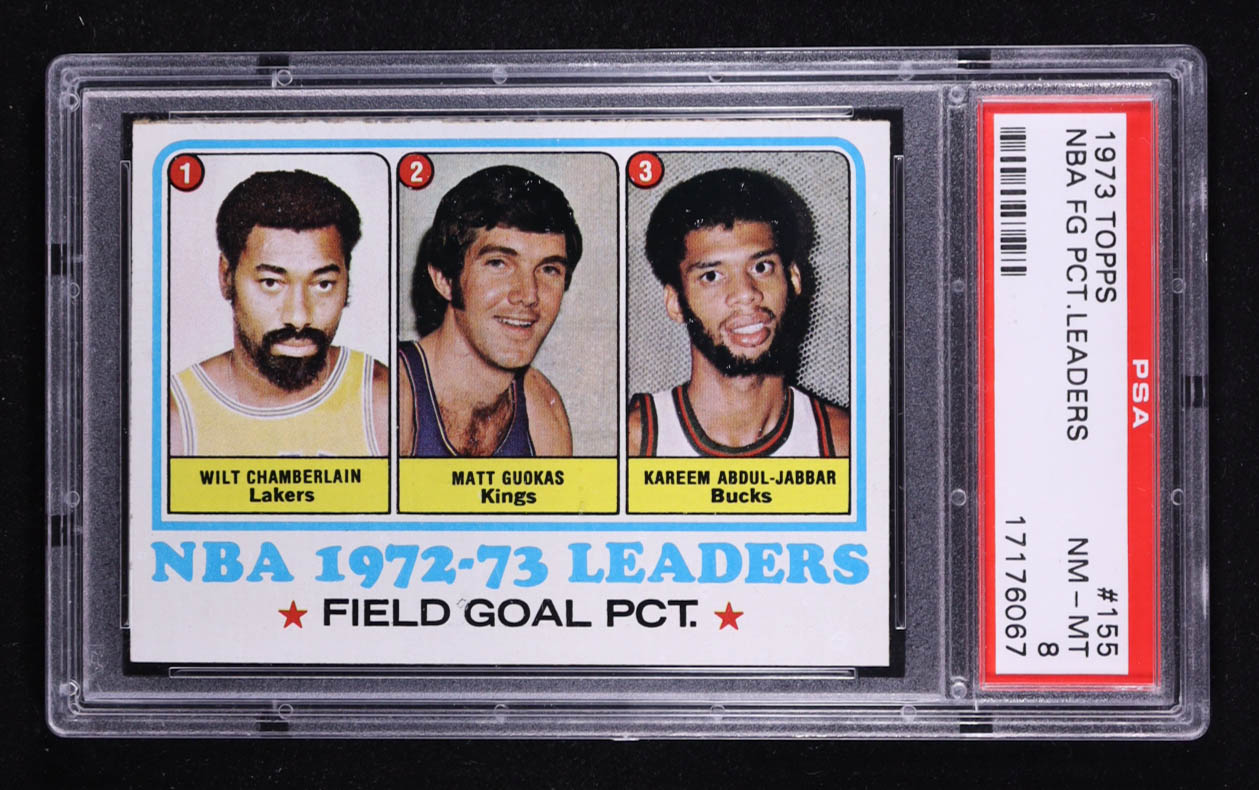 Wilt Chamberlain / Matt Guokas / Kareem Abdul-Jabbar 1973-74 Topps #155 LL (PSA 8)