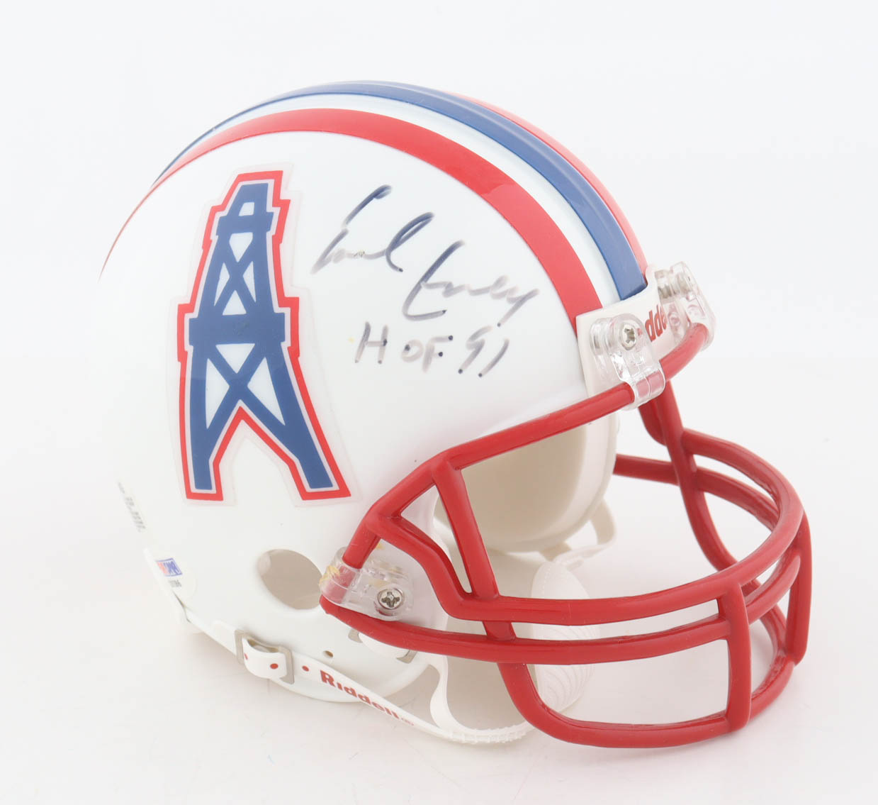 Riddell Houston Oilers speed mini helmet has been hand-signed and inscribed by Earl Campbell (HOF).