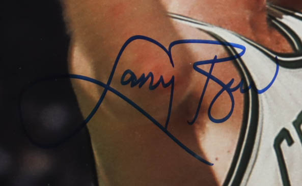 Custom frame measures approximately 23.5" x 28.5" in size and features a poster that has been hand-signed by Larry Bird (Boston Celtics, HOF).