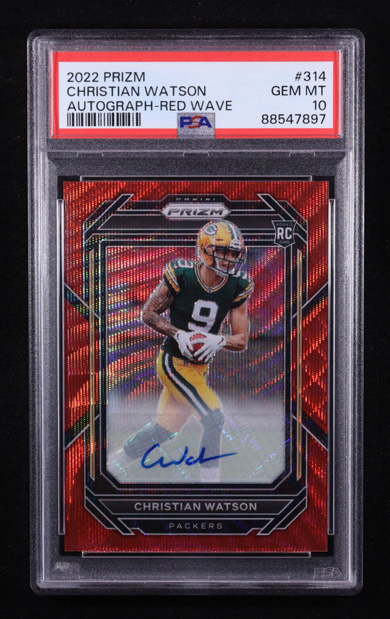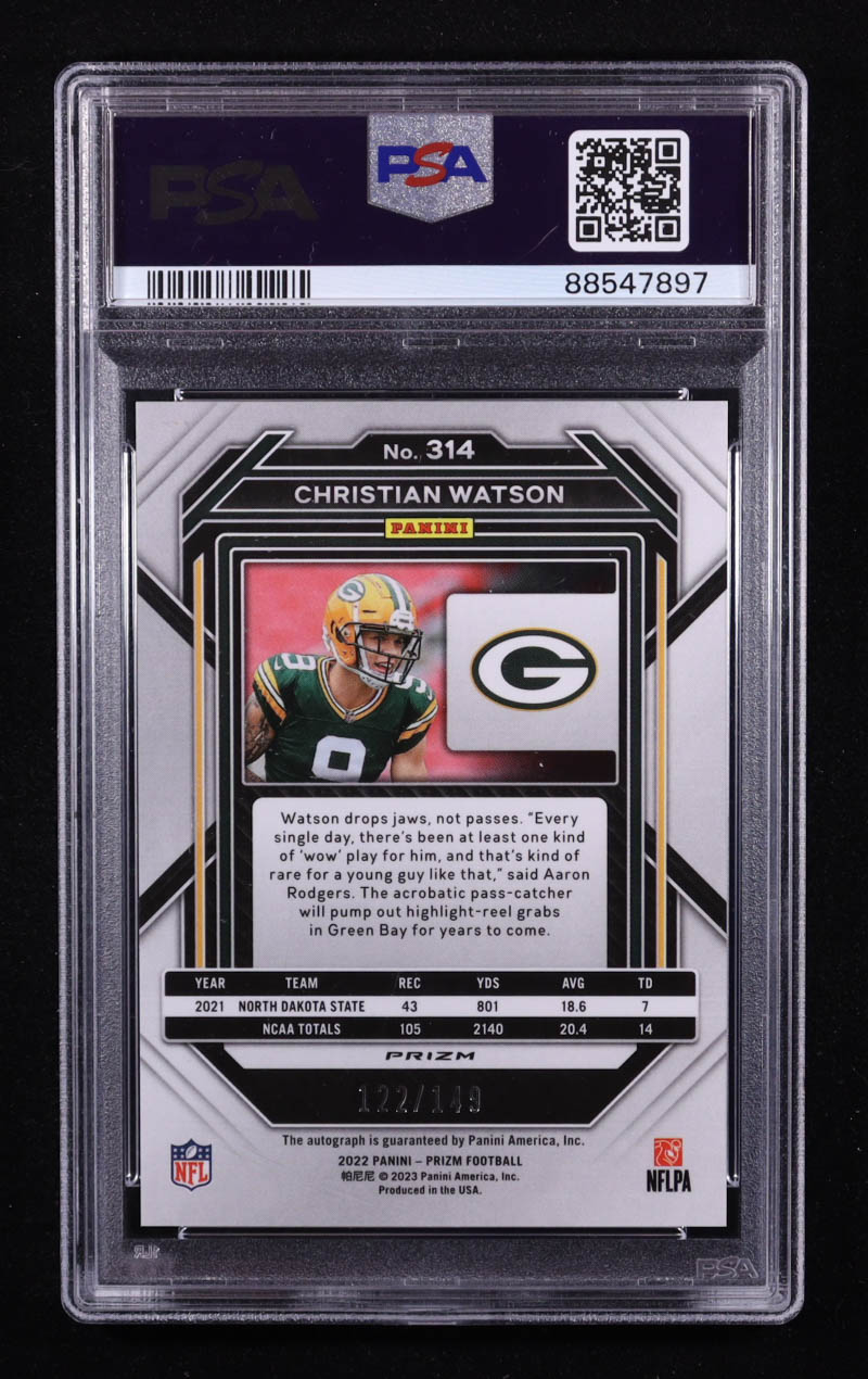 Christian Watson 2022 Panini Prizm Autographs Prizms Red Wave #314 #122/149 RC (PSA 10)