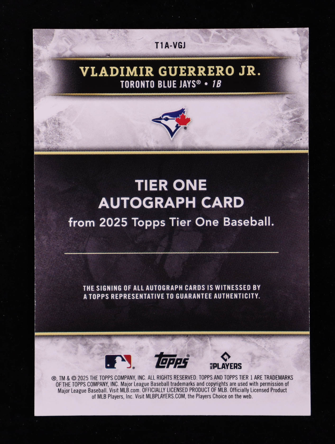 Vladimir Guerrero Jr. 2025 Topps Tier One Tier One Autographs Blue Foil #T1AVGJ #08/20