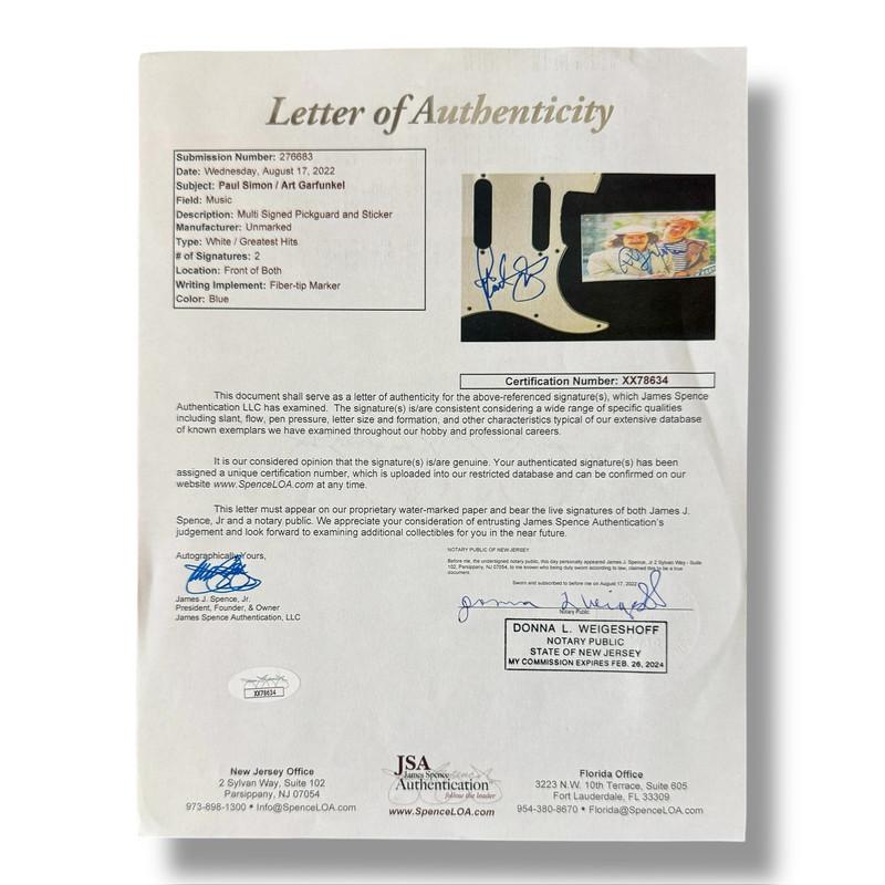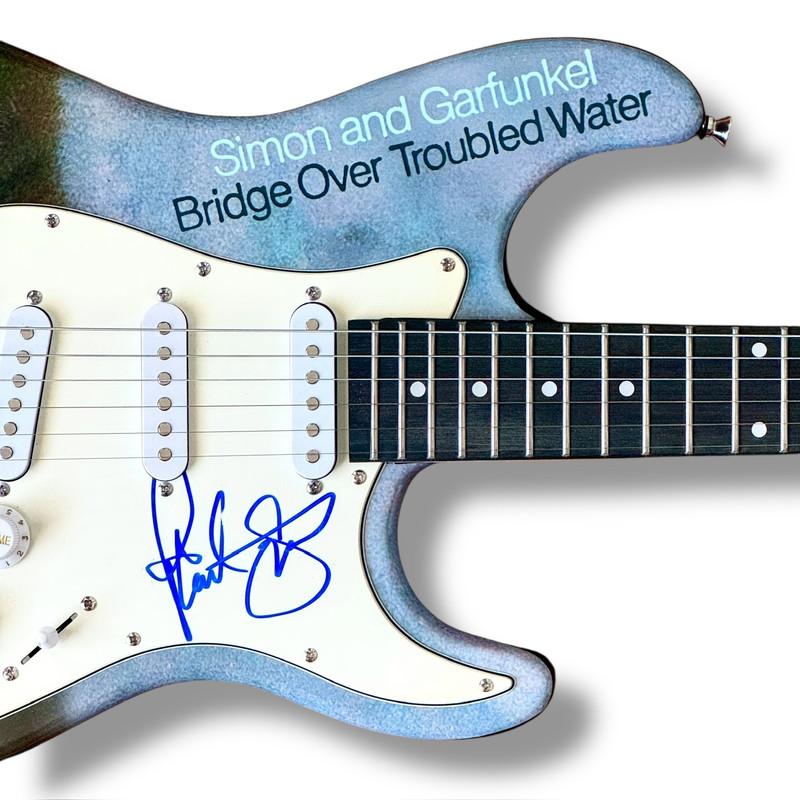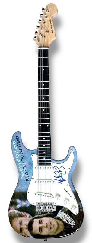 Custom Autograph Edition Stratocaster style electric guitar measures approximately 39" in length and has been hand-signed on the pickguard by Paul Simon (lead singer & songwriter).