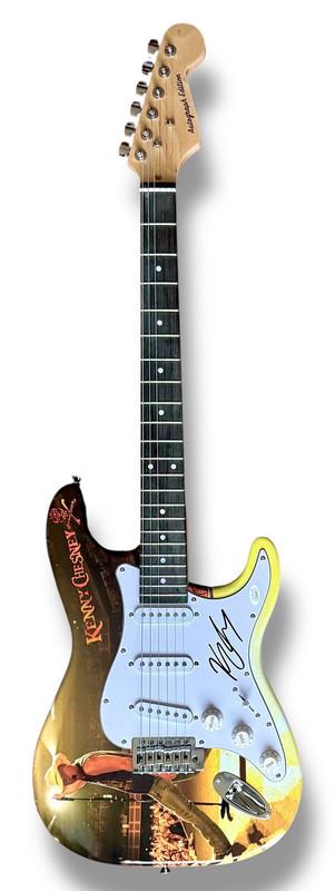 Custom Autograph Edition Stratocaster style electric guitar measures approximately 39" in length and has been hand-signed on the pickguard by Kenny Chesney.