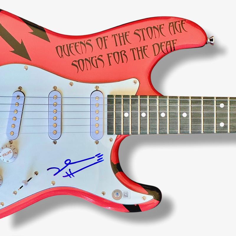Custom Autograph Edition Stratocaster style electric guitar measures approximately 39" in length and has been hand-signed on the pickguard by Josh Homme (Lead Singer).