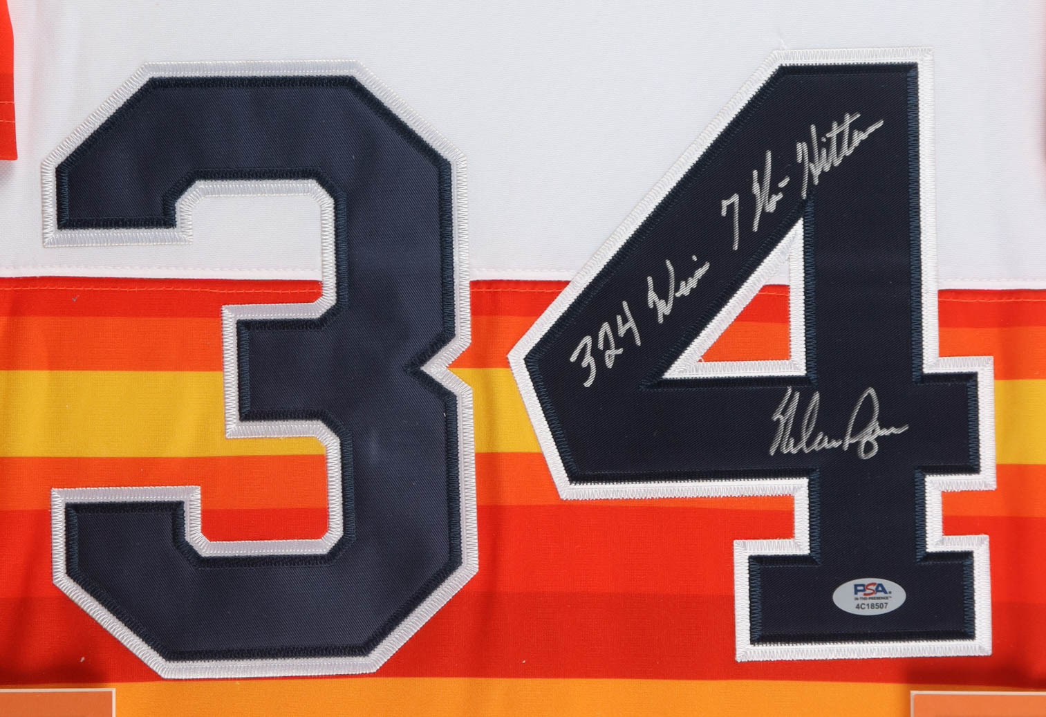 Nolan Ryan Signed Custom Framed Jersey Display Inscribed "324 Wins" & "7 No-Hitters" with a Set of (4) Career Pins (PSA)