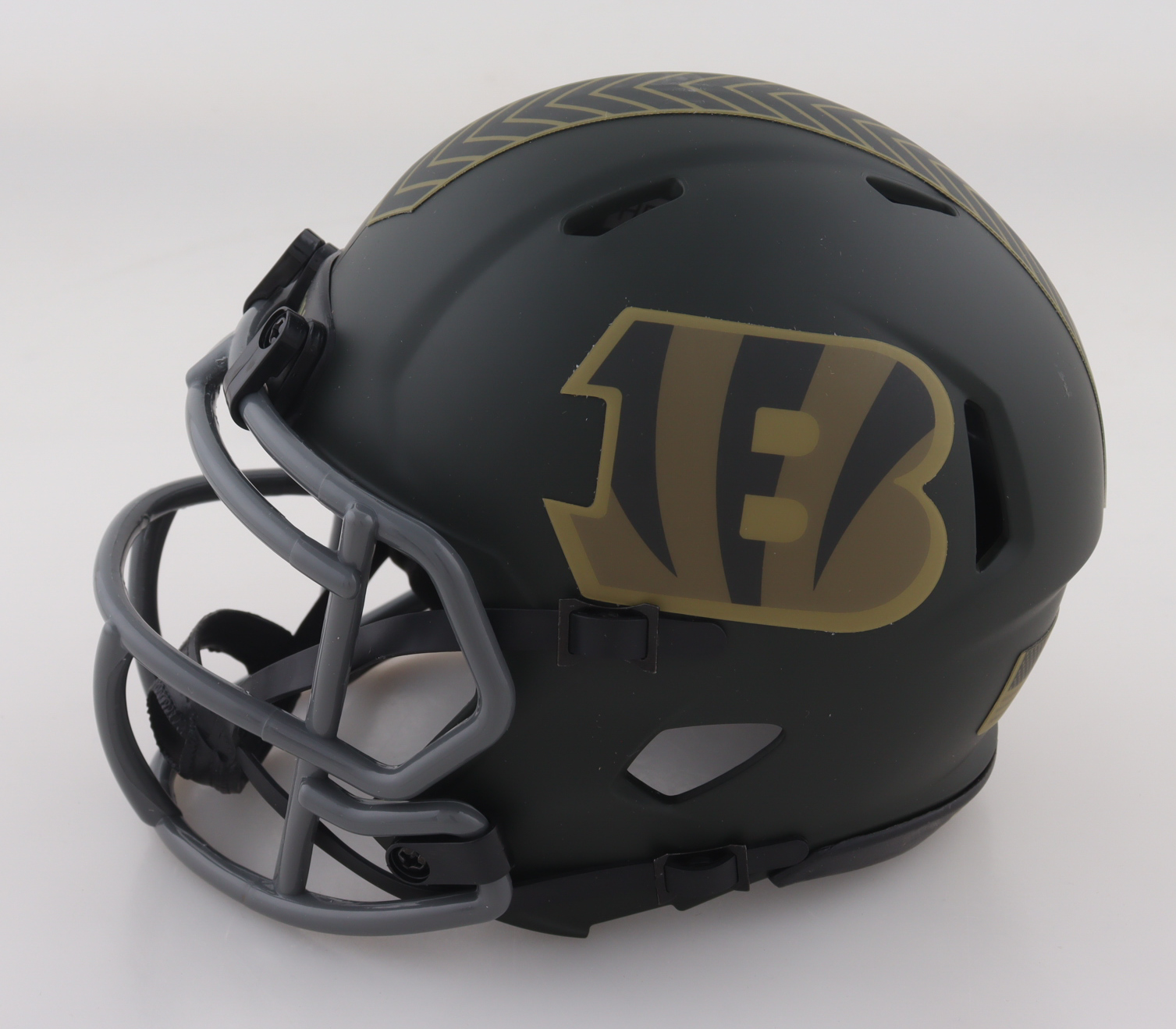 Riddell Cincinnati Bengals Salute To Service Alternate Speed Mini Helmet. Hand-signed by Chad 'Ochocinco' Johnson.