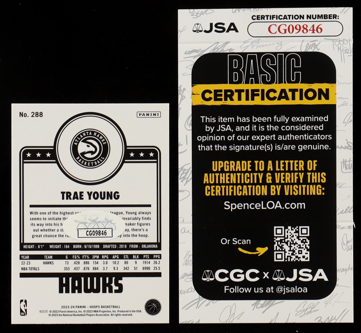 Trae Young Signed 2023-24 Hoops #288 (JSA)