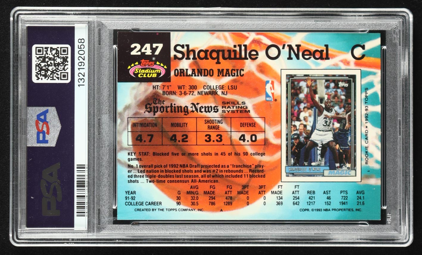 Shaquille O'Neal 1992-93 Stadium Club #247 RC (PSA 9)