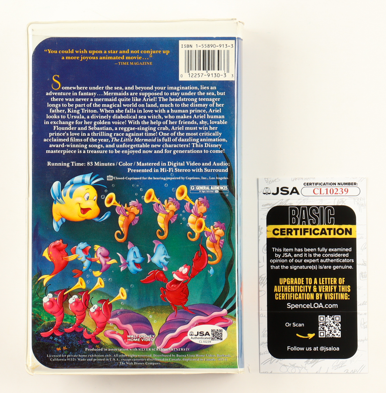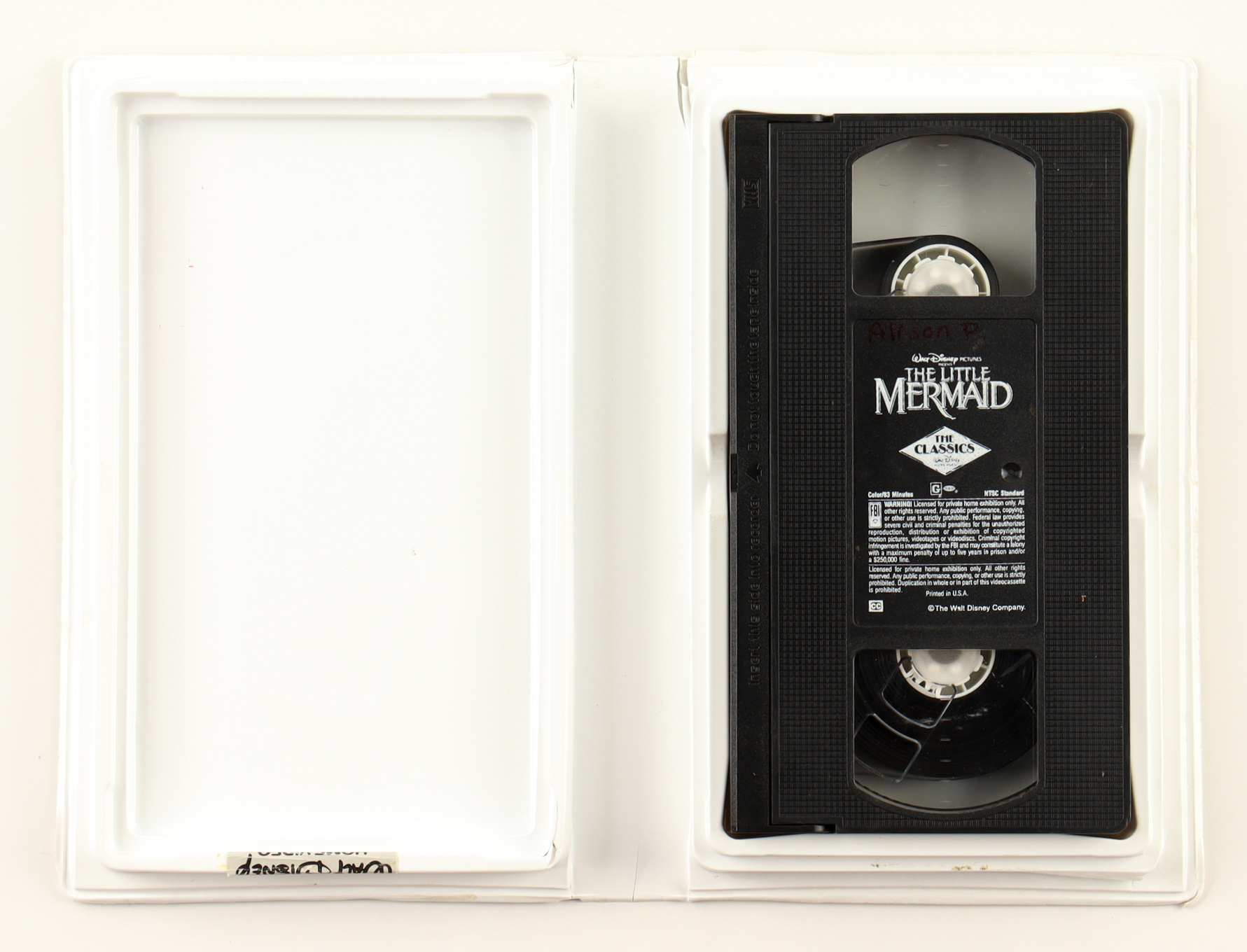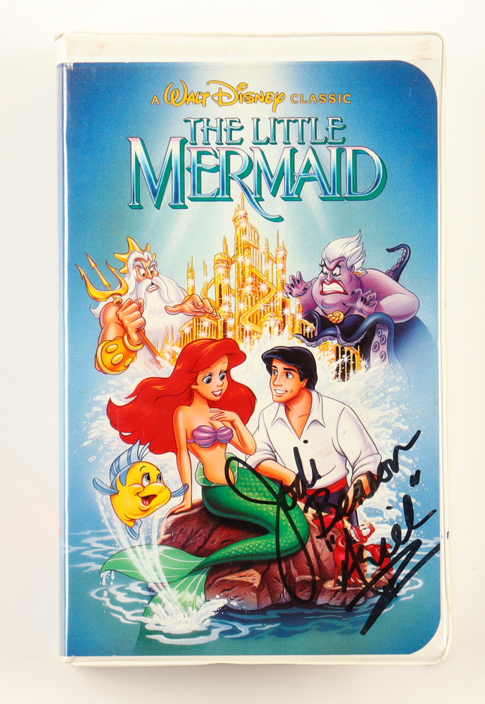 VHS tape has been signed on the slipcover by Jodi Benson (voice of Ariel). Please note, tape is included as shown, and there is damage to the case - see photos for more detail.