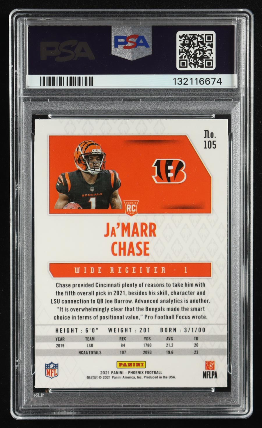 Ja'Marr Chase 2021 Panini Phoenix Fire Burst #105 RC (PSA 10)