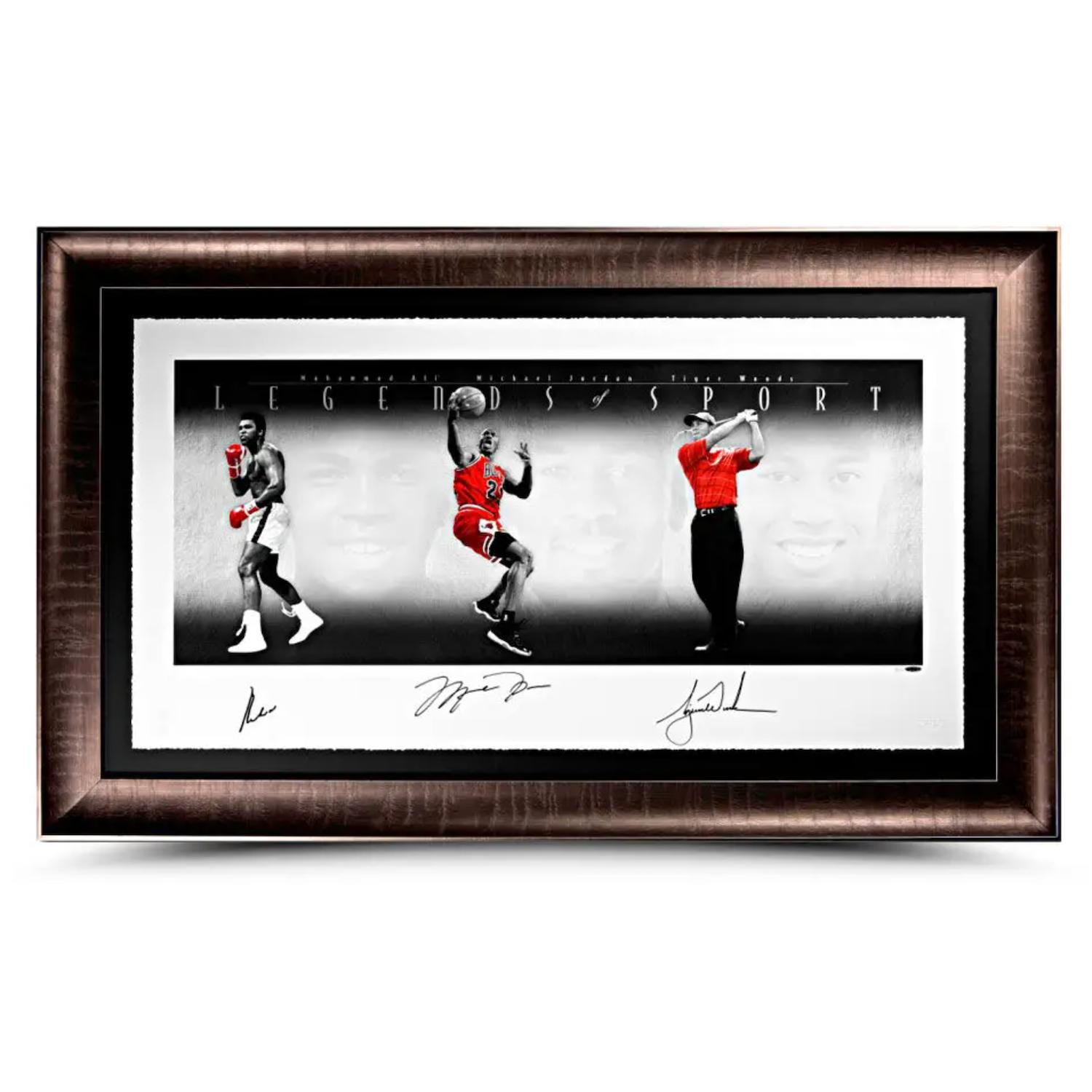 Michael Jordan, Tiger Woods & Muhammad Ali Signed LE "Legends of Sport" Custom Framed Platinum Lithograph (UDA & GOAT)