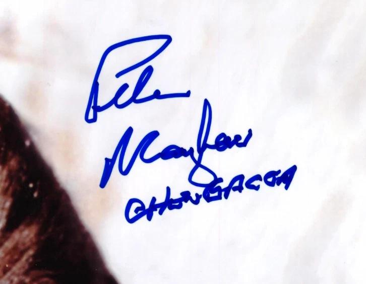 Photo measures 16" x 20" in size and has been hand-signed and inscribed by Peter Mayhew (D. 2019).