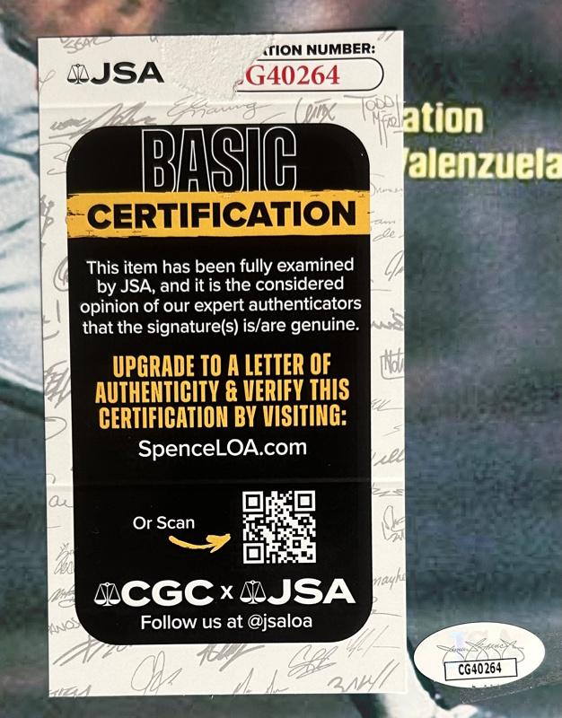 The autograph includes an official James Spence Authentication (JSA) hologram and matching COA for authenticity purposes.