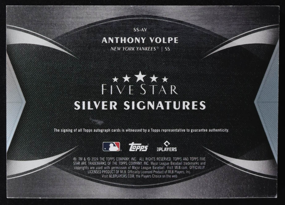 Anthony Volpe 2024 Topps Five Star Silver Signatures Blue #SSAV #1/20