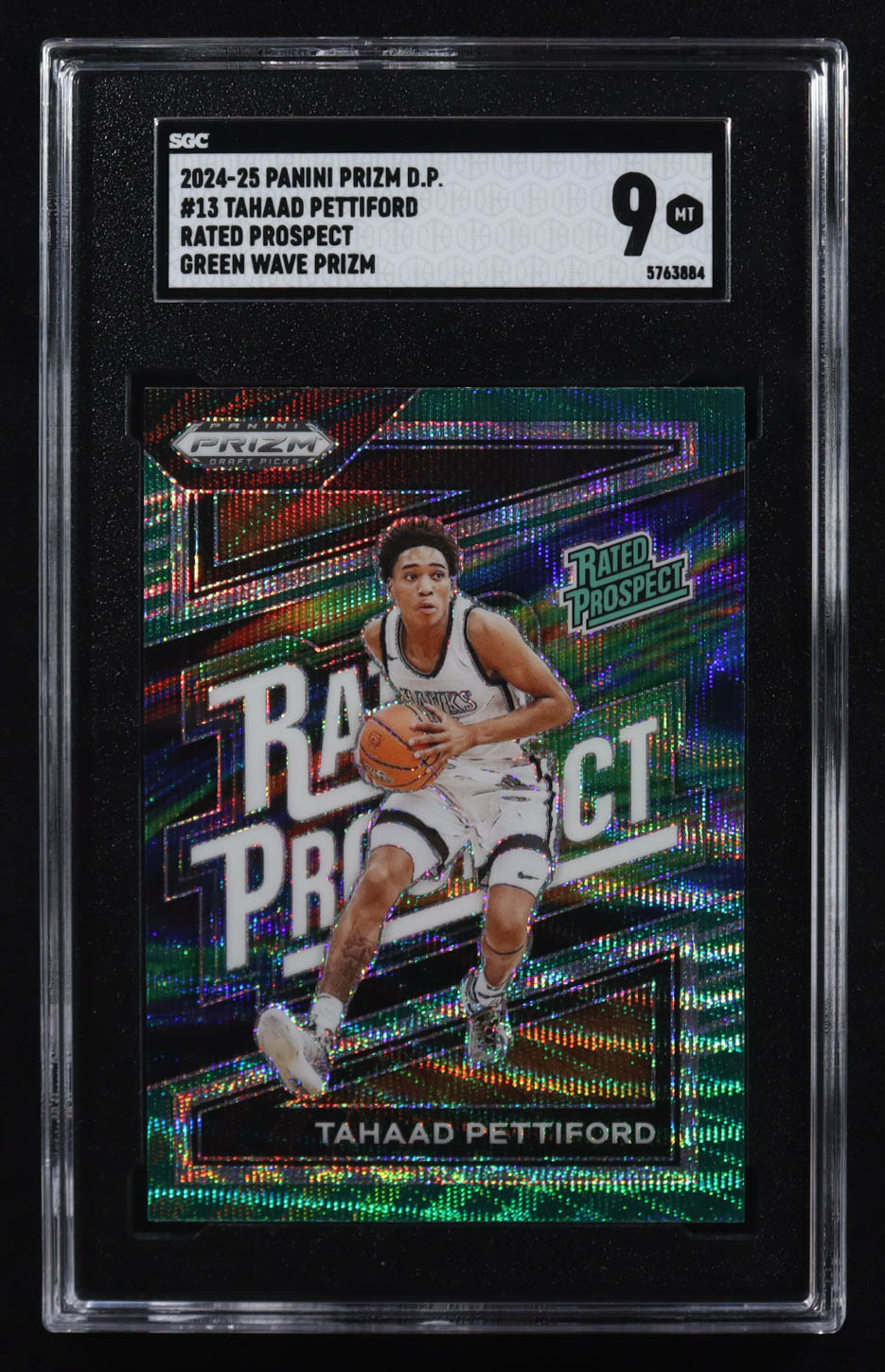 Tahaad Pettiford 2024-25 Panini Prizm Rated Prospect Green Wave #13 RC (SGC 9)