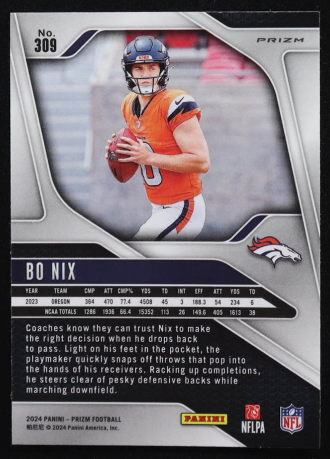 Bo Nix 2024 Panini Prizm Prizms Lazer #309 RC
