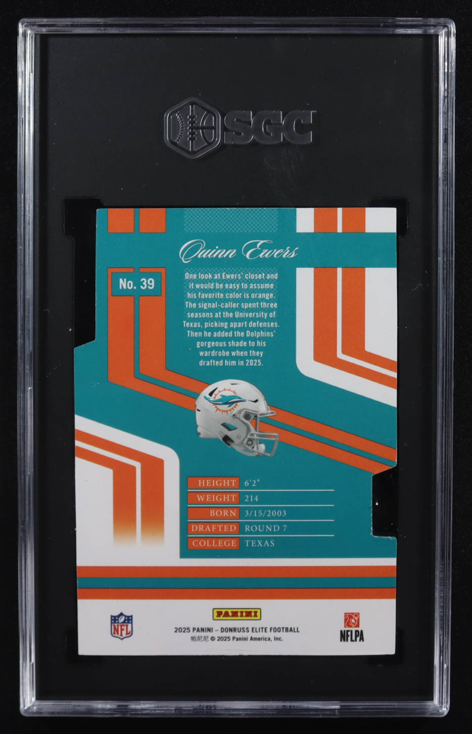 Quinn Ewers 2025 Panini Elite '07 Elite Rookies Aspirations Die-Cut #39 RC #62/99 (SGC 9)