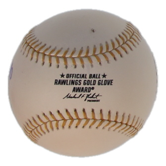 Rawlings Official Gold Glove Award Logo Baseball. Hand-signed and inscribed by Don Mattingly (New York Yankees). Please note, the signature ink has bled.