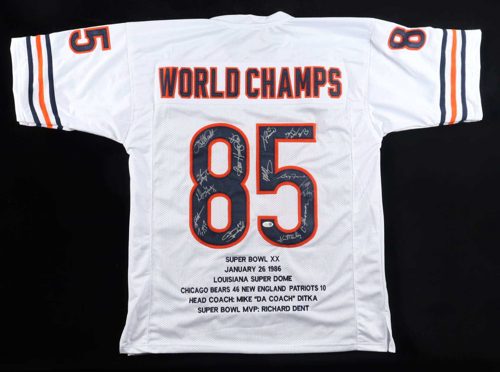 1985 Bears World Champions Highlights Jersey Team-Signed by (14) with Mike Singletary, Willlie Gault, Shaun Gayle, Stefan Humphries (JSA)