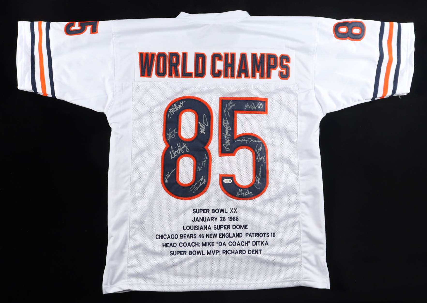 1985 Bears World Champions Highlights Jersey Team-Signed by (14) with Mike Singletary, Willlie Gault, Shaun Gayle, Stefan Humphries (JSA)