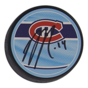 Montreal Canadiens logo puck hand-signed by Nick Suzuki.
