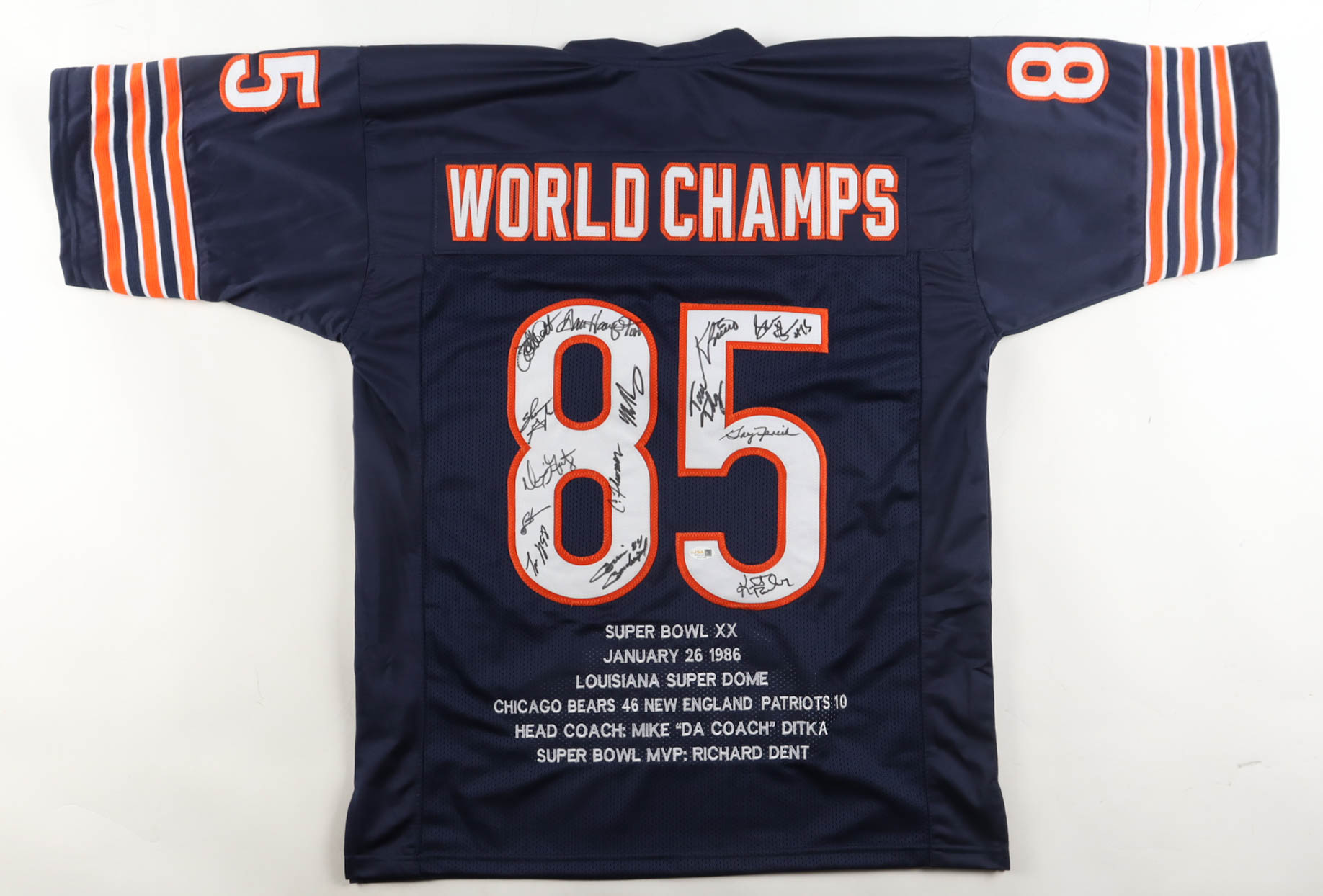 1985 Bears World Champions Highlights Jersey Team-Signed by (14) with Mike Singletary, Willlie Gault, Shaun Gayle, Stefan Humphries (JSA)