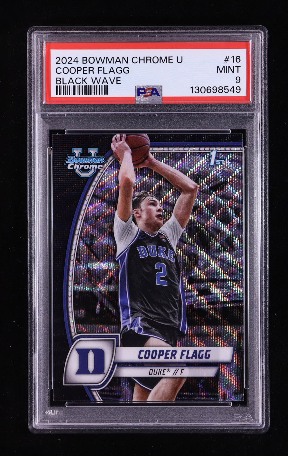 Cooper Flagg 2024-25 Bowman Chrome University Black Wave Refractors #16 RC (PSA 9)