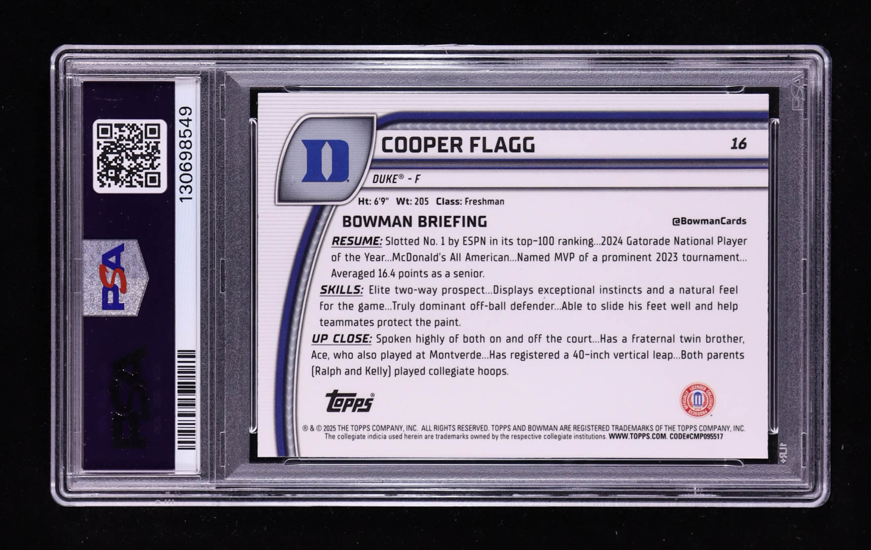 Card has been graded (PSA) 9. Please see photos for more details regarding the condition of the card (Duke Blue Devils).