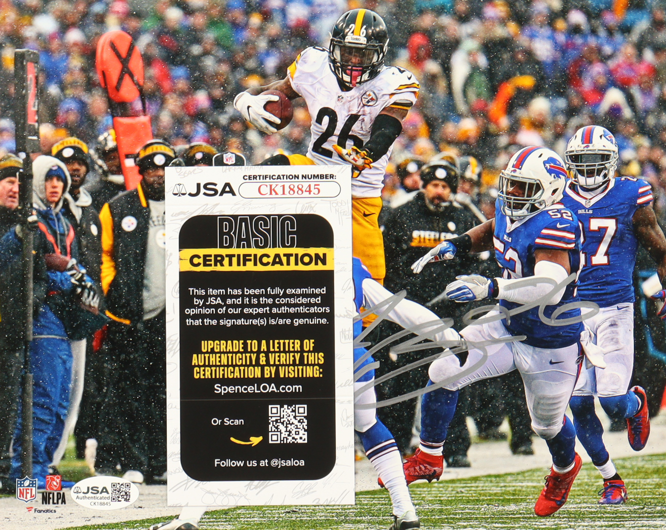 Photo measures 8" x 10" in size and has been hand-signed by Le'Veon Bell (Pittsburgh Steelers).