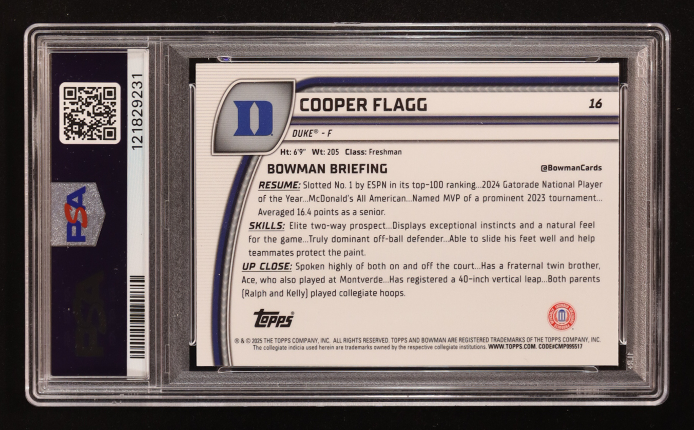 Cooper Flagg 2024-25 Bowman Chrome University Black Wave Refractors #16 RC (PSA 10)
