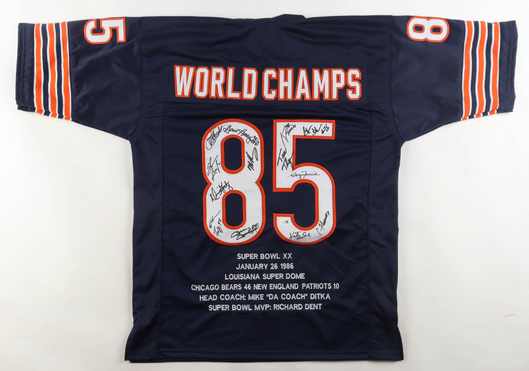 1985 Bears World Champions Highlights Jersey Team-Signed by (14) with Mike Singletary, Willlie Gault, Shaun Gayle, Stefan Humphries (JSA)