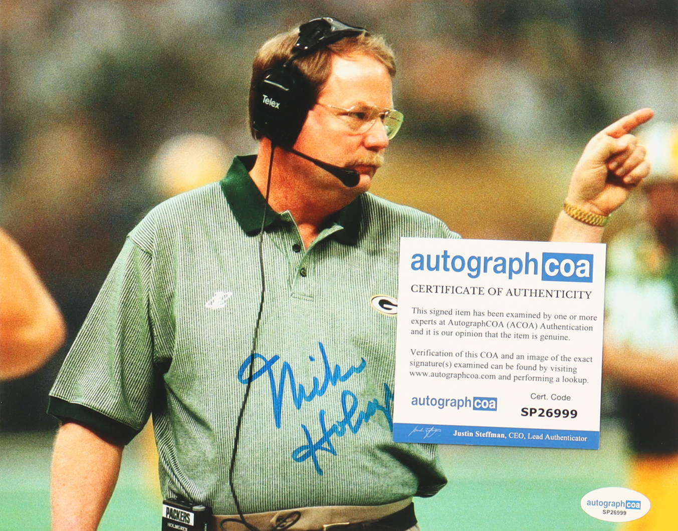 Photo measures 8” x 10” in size and has been hand-signed by Mike Holmgren (Green Bay Packers).
