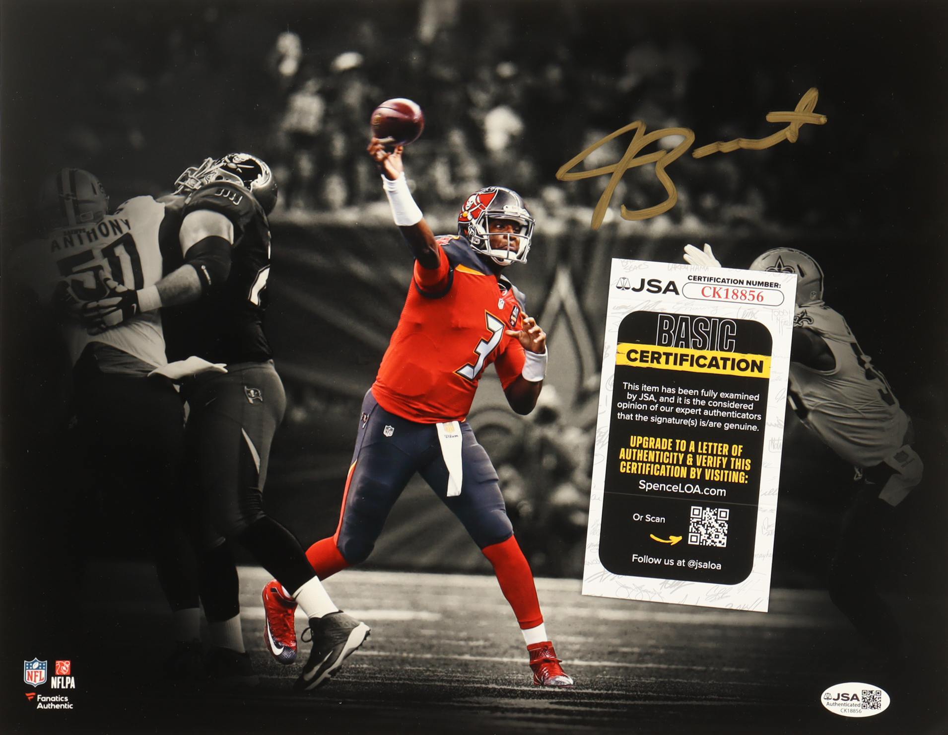 Photo measures 11" x 14" in size and has been hand-signed by Jameis Winston (Tampa Bay Buccaneers).