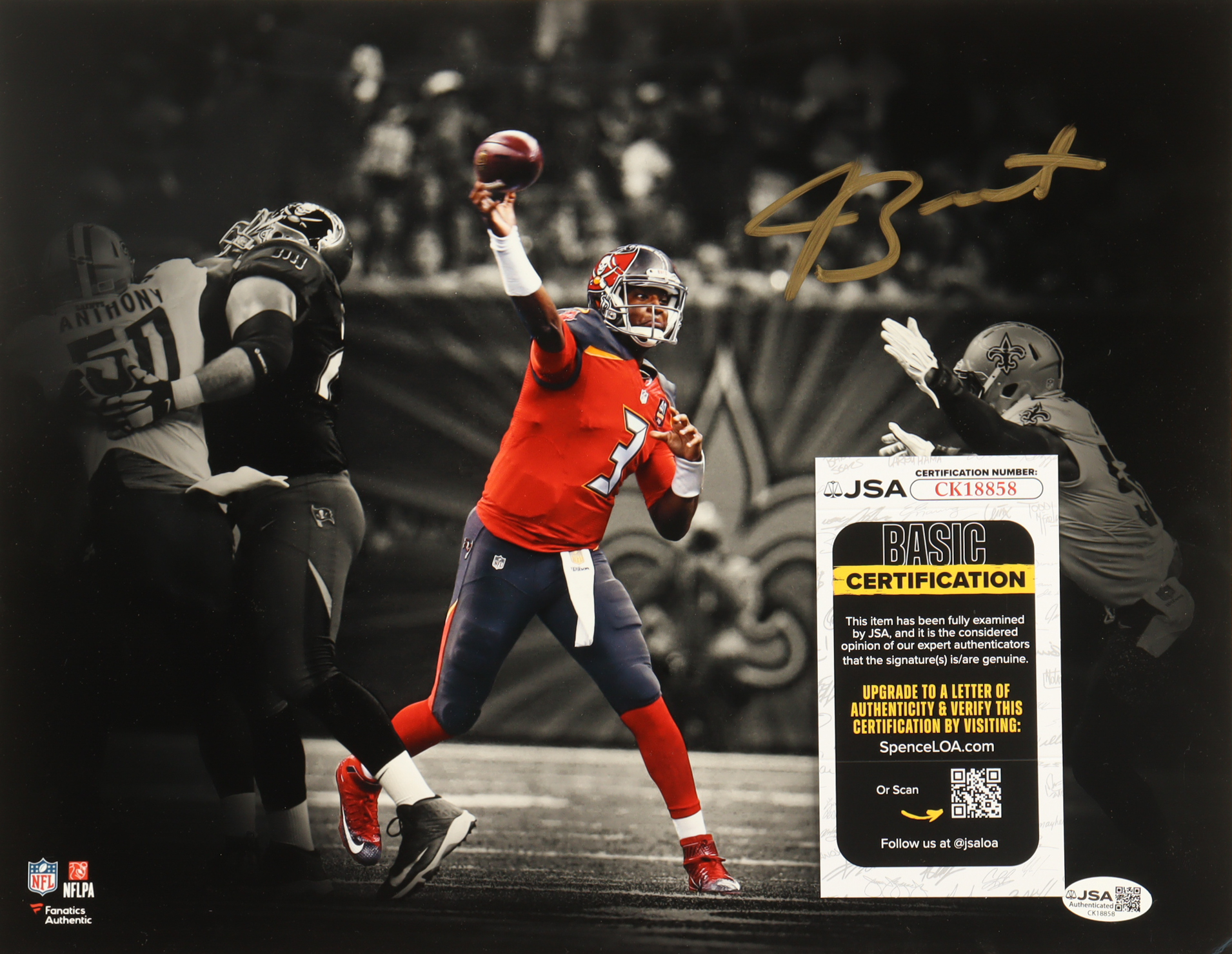Photo measures 11" x 14" in size and has been hand-signed by Jameis Winston (Tampa Bay Buccaneers).