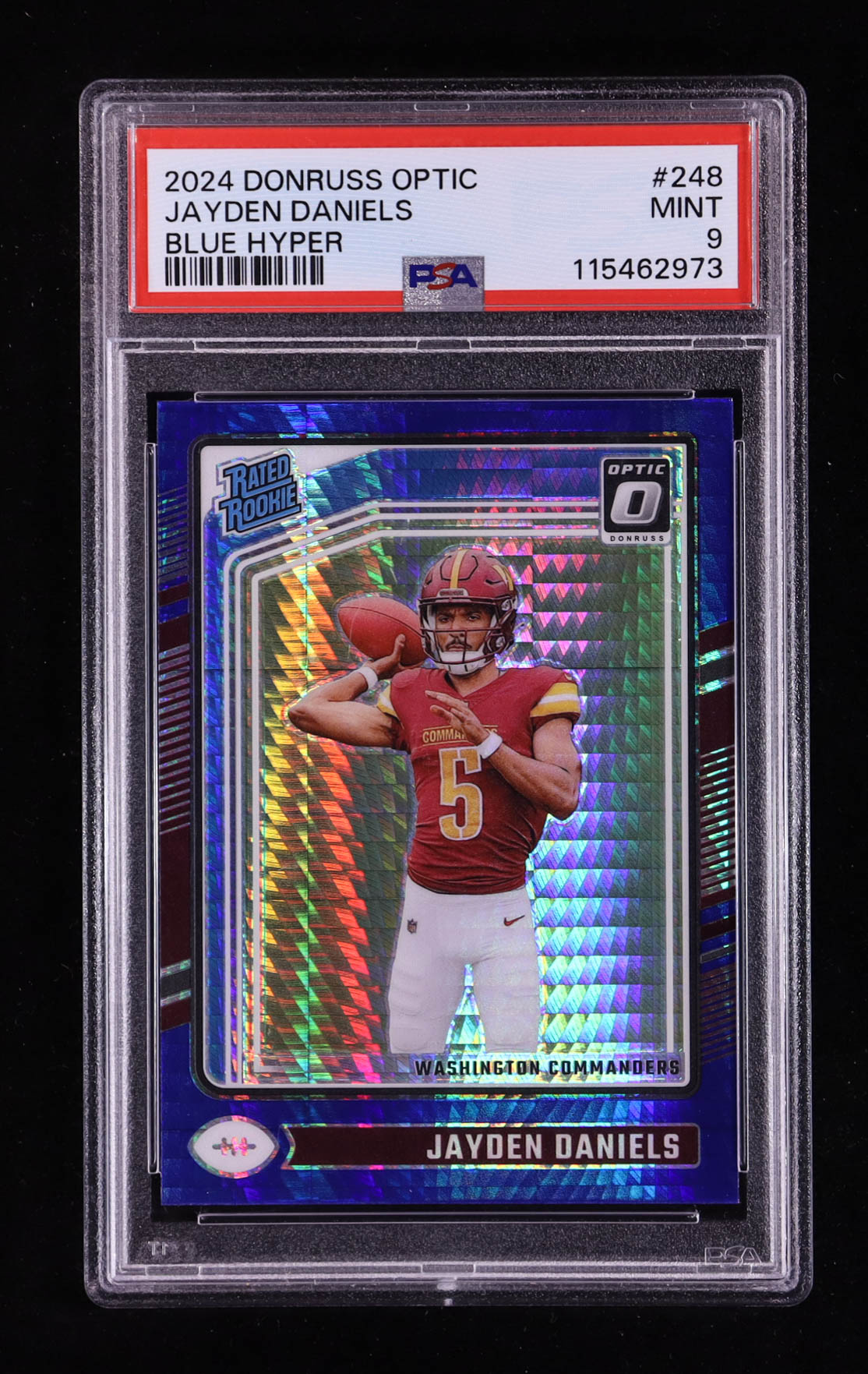 Jayden Daniels 2024 Donruss Optic Blue Hyper #248 RR RC (PSA 9)