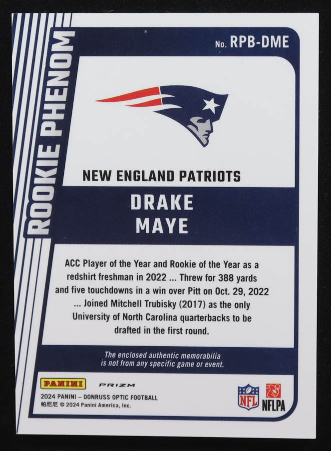 Drake Maye 2024 Donruss Optic Rookie Phenoms Blue Hyper #12 RC