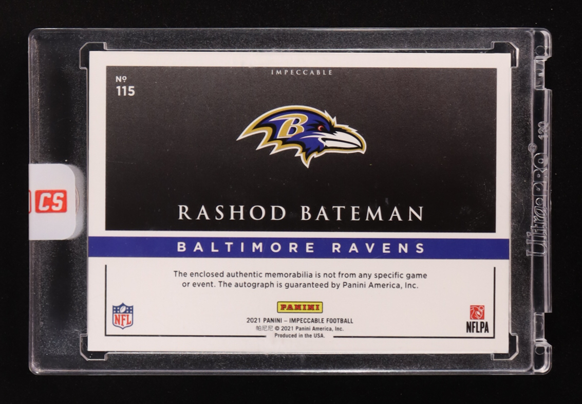 Rashod Bateman 2021 Panini Impeccable #115 #26/75 HEL PAT AU EXCH RC