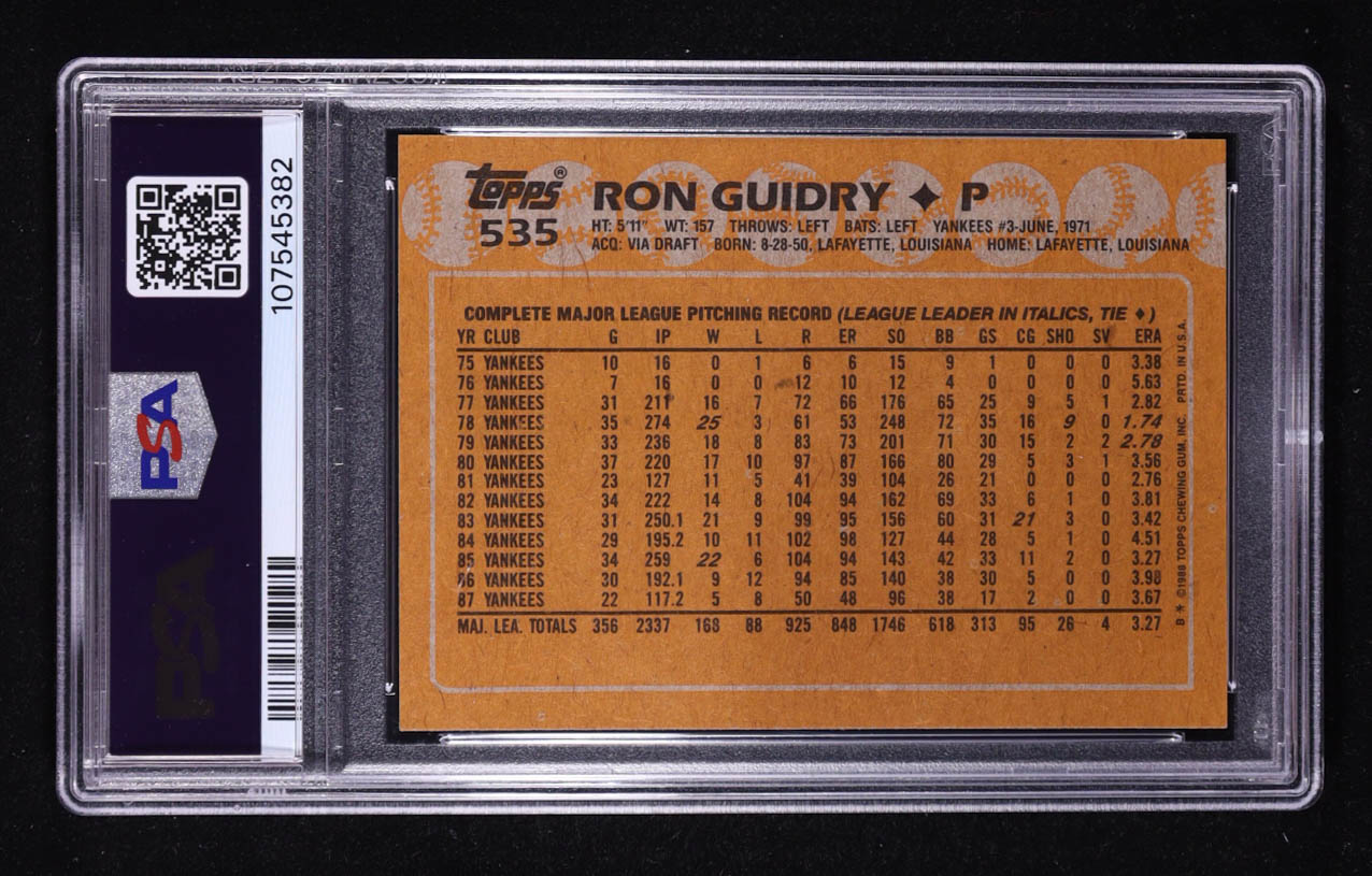 Ron Guidry 1988 Topps #535 (PSA 8)