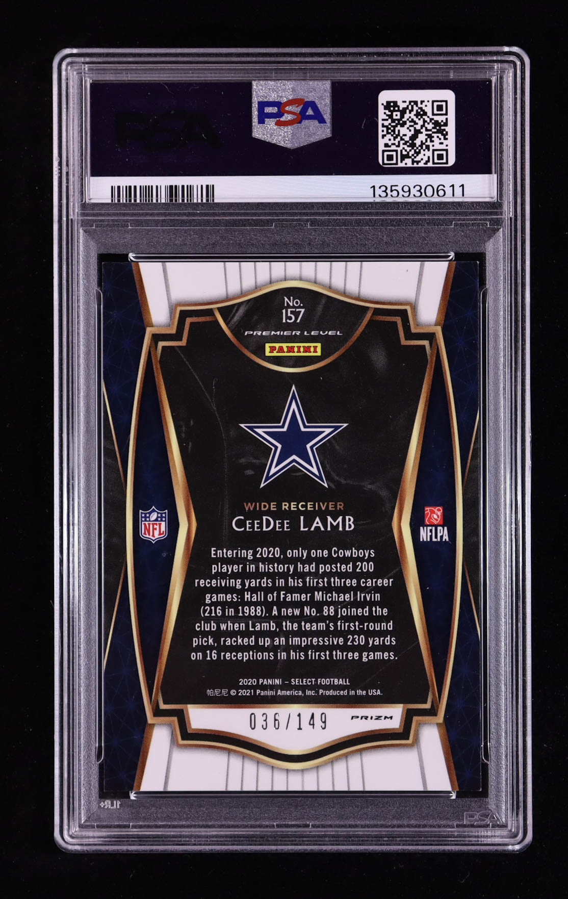 CeeDee Lamb 2020 Select Prizm Blue #157 RC #036/149 (PSA 9)