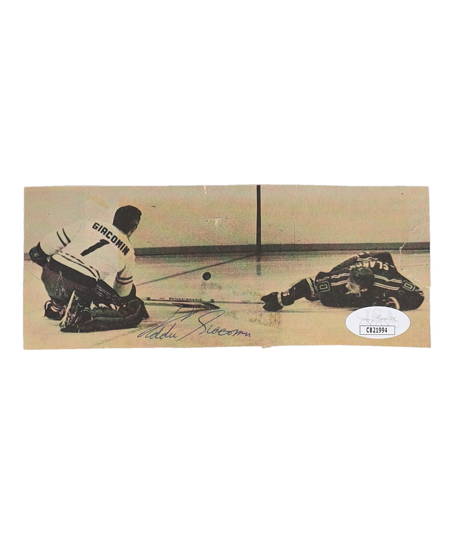 Cut measures approximately 2.5" x 6.5" in size and has been hand-signed by Eddie Giacomin (New York Rangers, HOF). Please refer to photos for more details on the condition of the item.