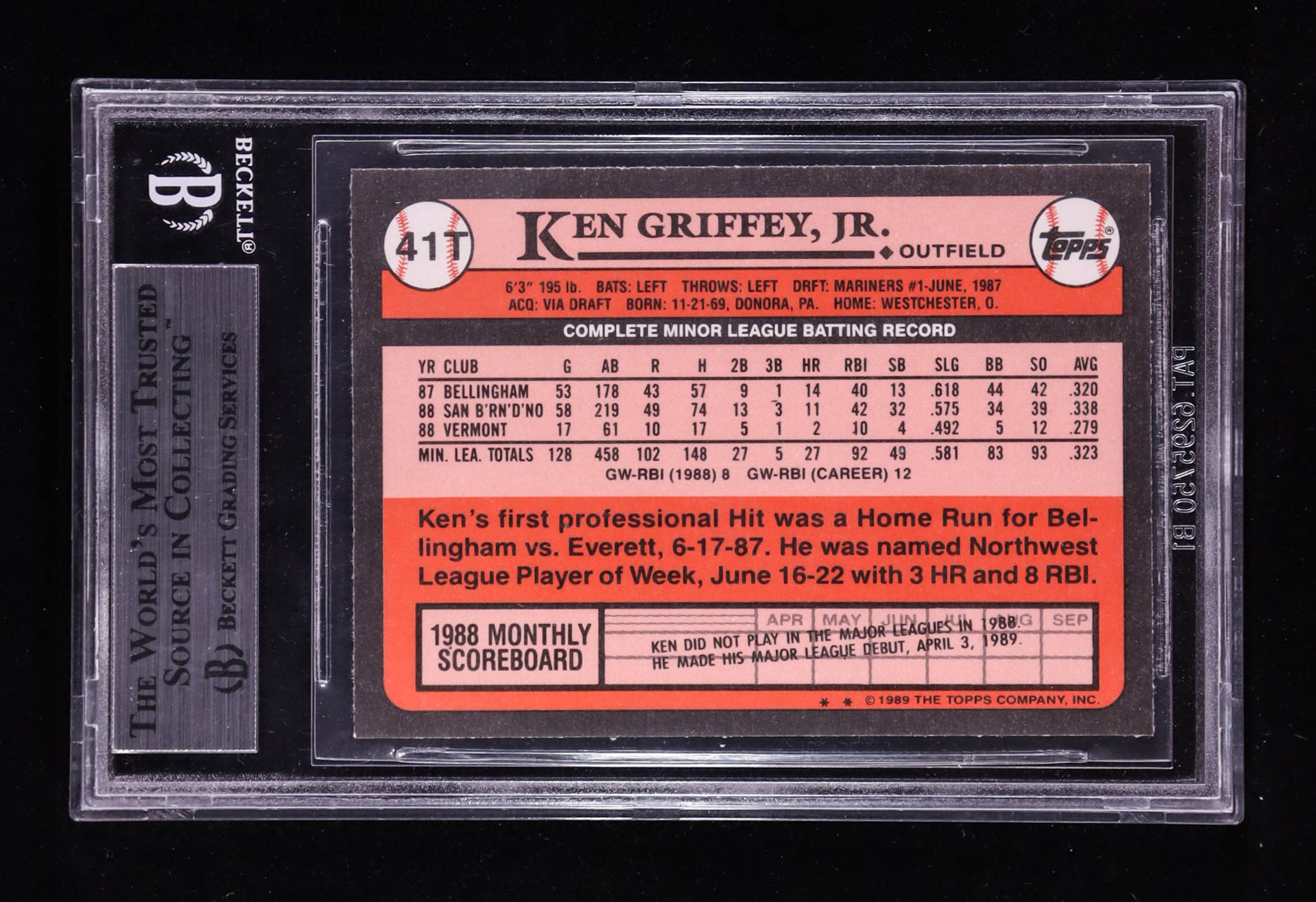 Ken Griffey Jr. 1989 Topps Traded #41T RC (BGS 9)