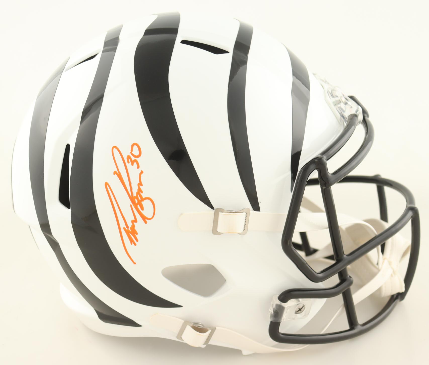 Riddell Cincinnati Bengals full-size speed replica helmet. Hand-signed by Chase Brown.