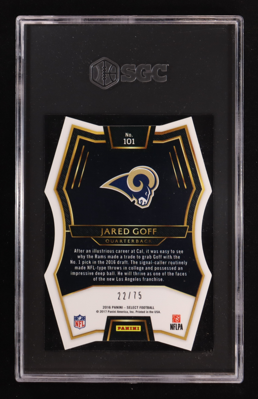 Jared Goff 2016 Select Prizm Purple #101 #22/75 RC (SGC 9)