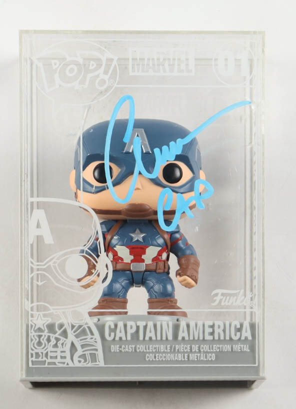 Chris Evans Signed "Marvel" #01 Captain America Funko Pop Die-Cast Figure Inscribed "Cap" (SWAU)